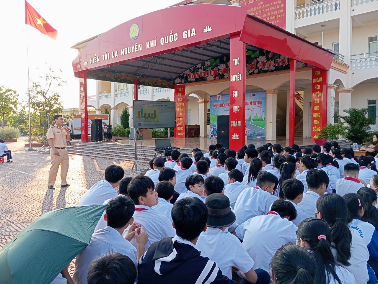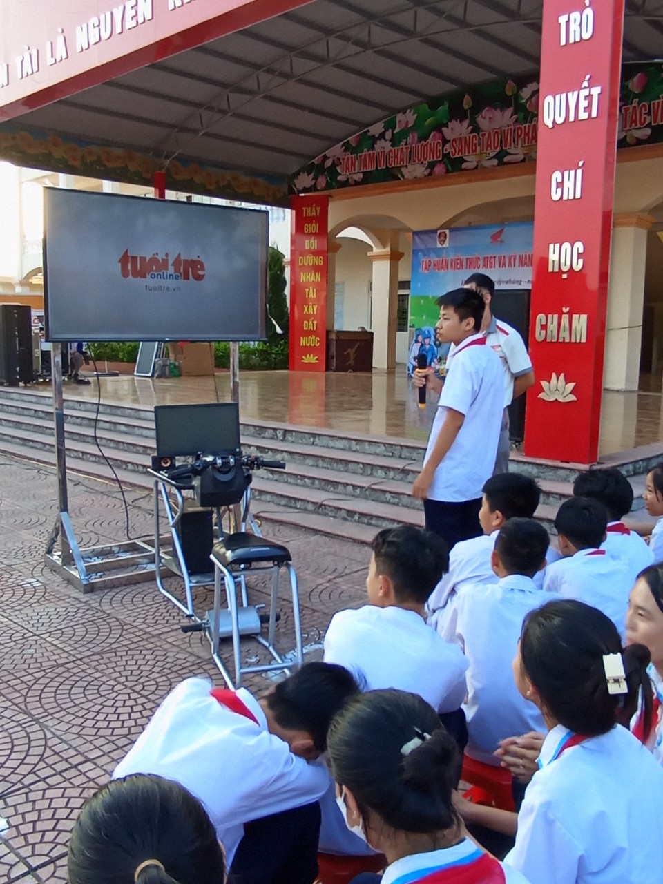 Ngoài ra, thông qua phần giao lưu câu hỏi, các em học sinh cũng nhận thức, nhận biết các nhóm biển báo và biển báo cơ bản giúp cho việc lái xe an toàn, bảo vệ tính mạng và tránh tai nạn giao thông, đồng thời nâng cao ý thức, kỹ năng tham gia giao thông và tuân thủ các quy định về an toàn giao thông.